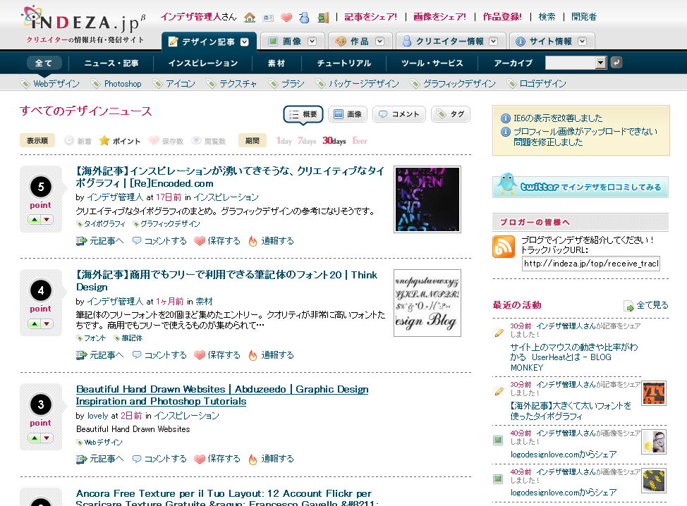 インデザ.jp クリエイターの情報共有・発信サイト