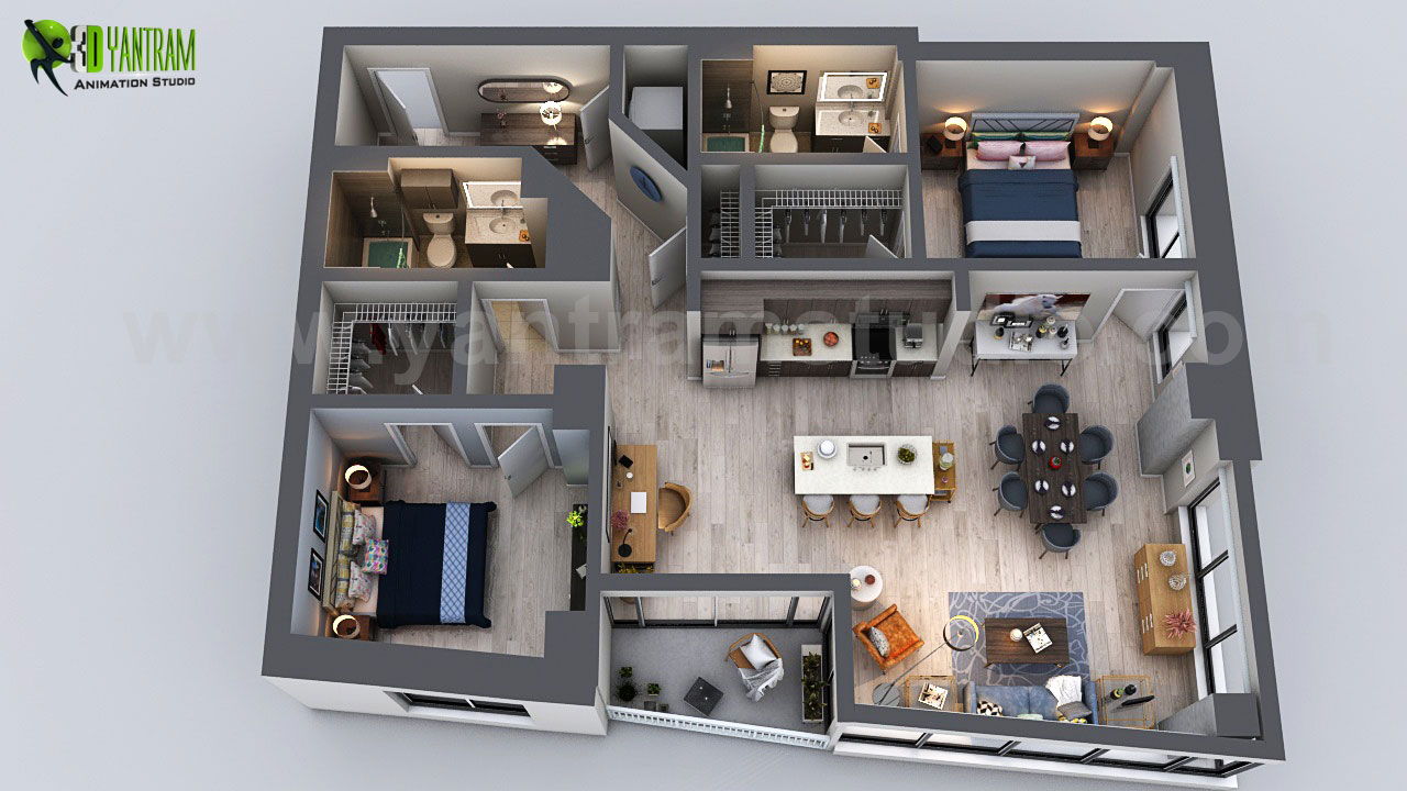 Unique Residential Apartment 3D Floor Plan Rendering Ideas by Yantram 3D Virtual Floor Plan Design, San Diego - USA