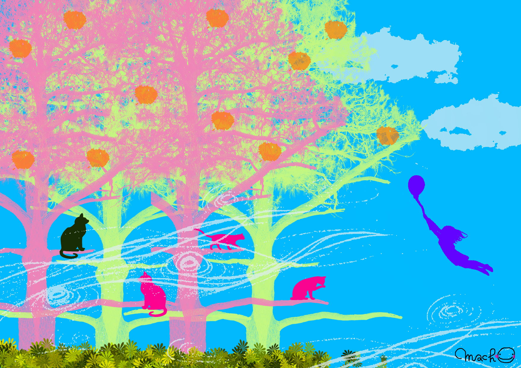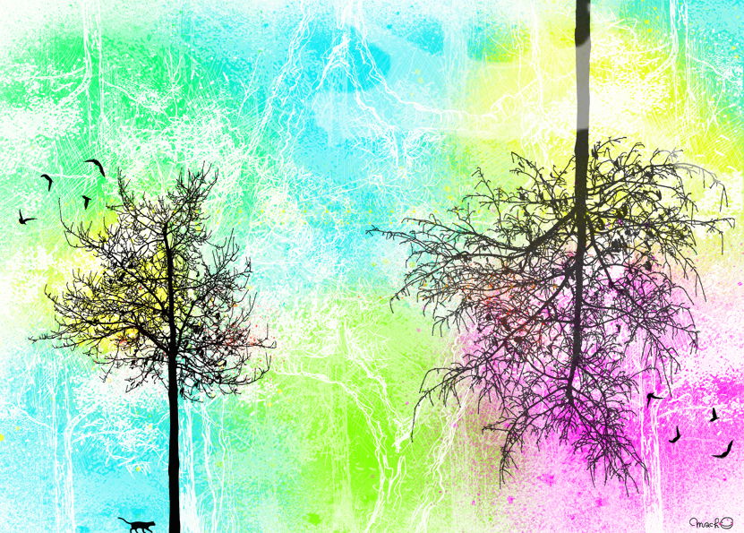 木の下で仲間と待ち合わせです。