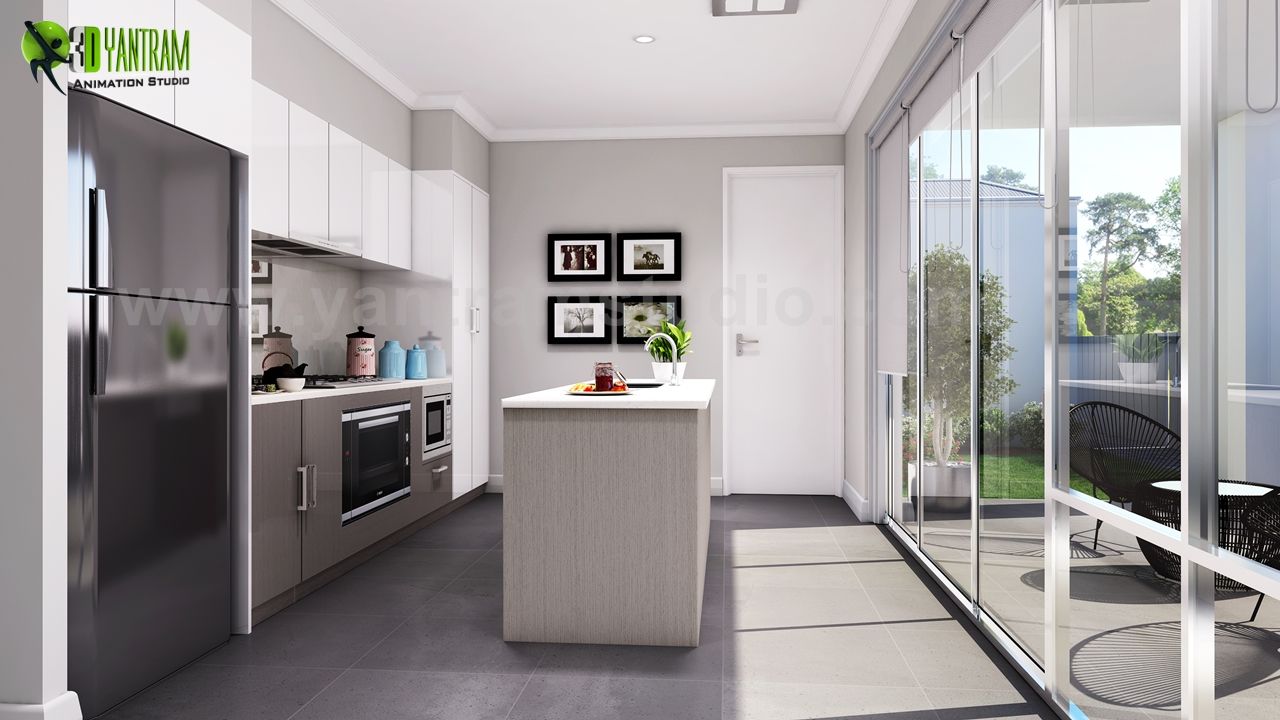 近代的な家の外観の家は非常に大胆に見える、アイランドや木製の家具付きのクールなキッチン、バスルームは白い大理石のデザインです - Yantramによるアイデア3D Architectural Visualization、Amsterdam - オランダ