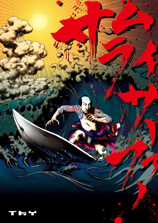 侍をモチーフにしたサーフィンイラストです。