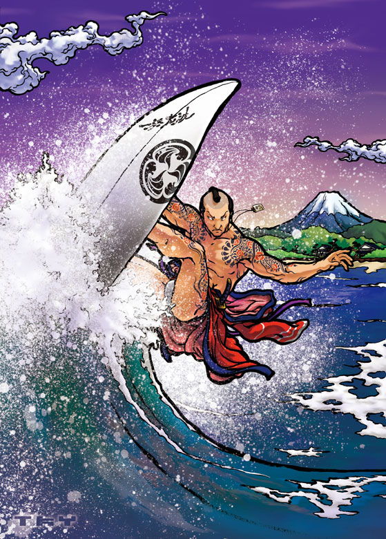 侍をモチーフにしたサーフィンイラストです。
