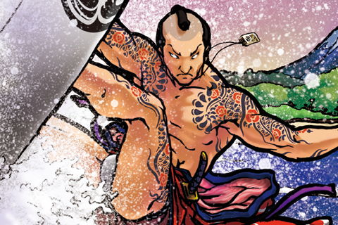 侍をモチーフにしたサーフィンイラストです。