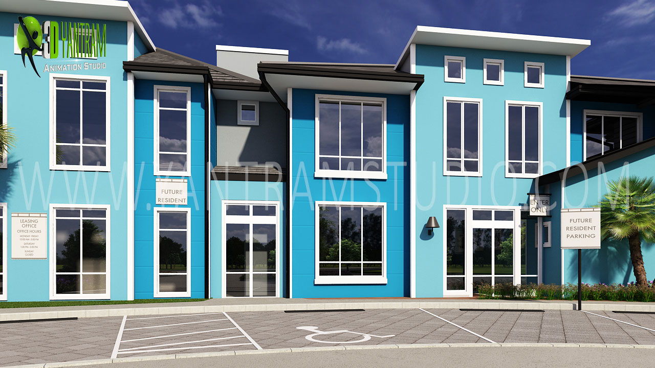 3D Architectural Animation Exterior House Apartment Building Architectural Design Rendering Companies Parking Ideas