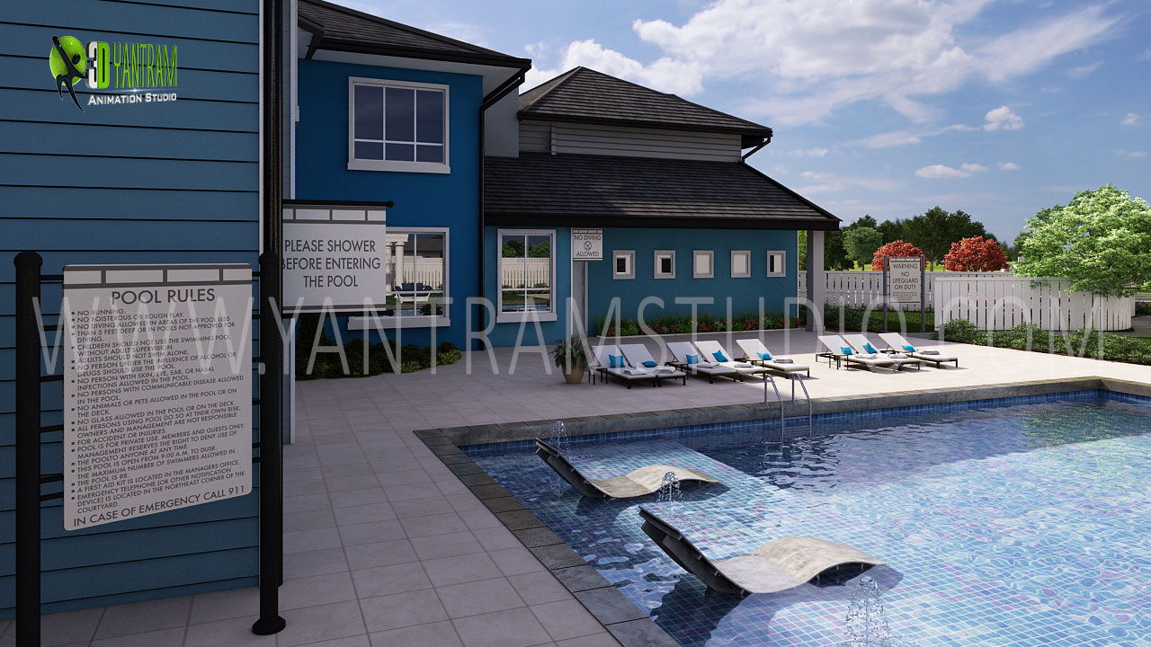360 Walkthrough, 3D Architectural Animation Exterior House, Club House with Wooden Furniture & Pendant Light, 360 Walkthrough Pool View with Sitting Management, Enterance Community Sign Rendering Walkthrough Animation Rendering Design, 3d Architectural Animation Exterior House Apartment Rendering with Parking Ideas, Pond Design View front of Apartment Renderings Design, Natural Landscaping Lighting 360 Rendering Service Firms, 3D Walkthrough Exterior Parking View Visualization - Ideas by Yantram 3D Exterior Design Companies, Vancouver - Canada