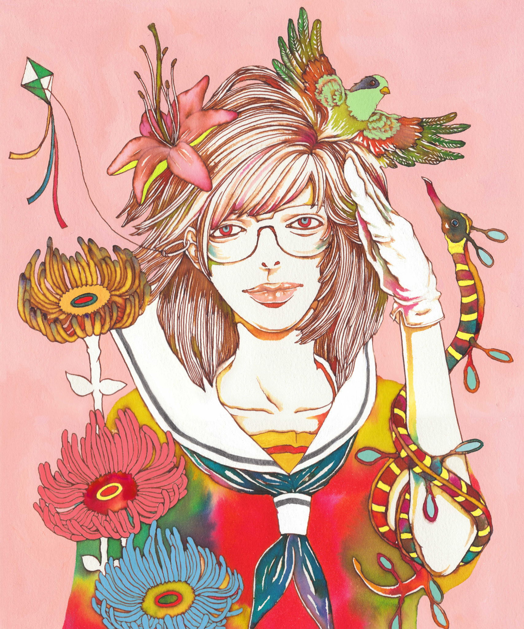 インク等を使った水彩のイラストレーションです。