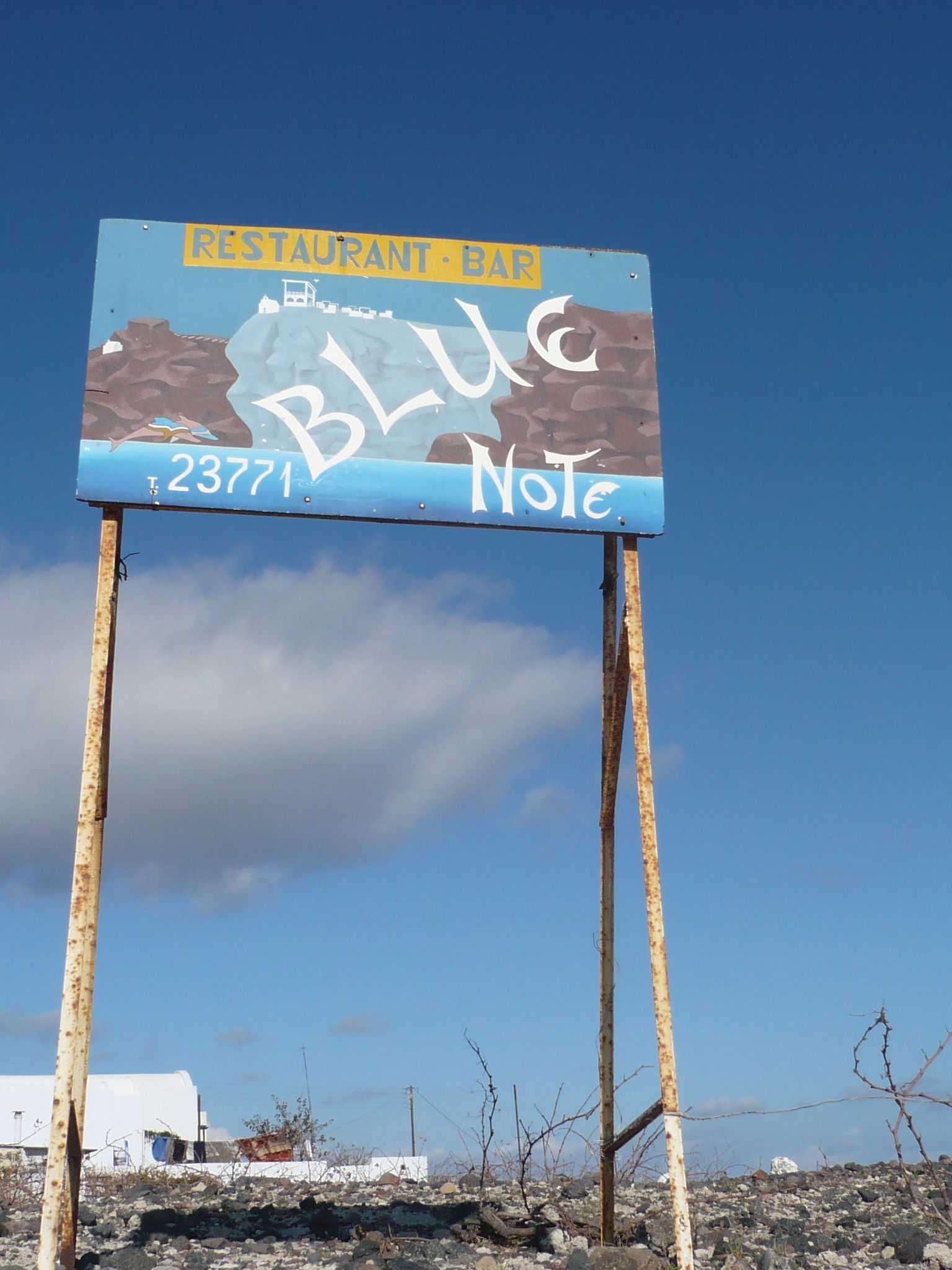 サントリーニの風吹く看板