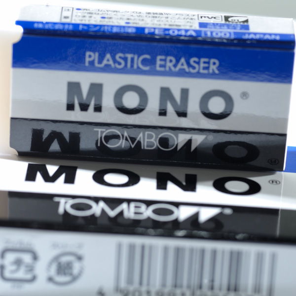 プラスティック消しゴムの代名詞とも言えるほどの有名人。MONO の消しゴムです