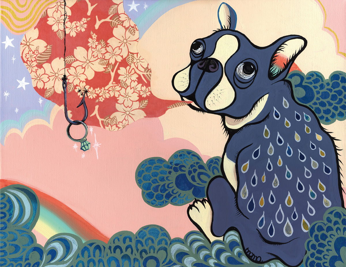 サクラの時期に誰もが思う想いをボストンテリアに置き換えて表現してます。