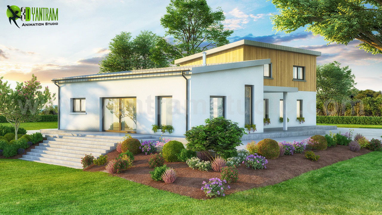 Exterior Small Pod House of Rendering Services ideas by Yantram Architectural Visualisation Studio, London - UK