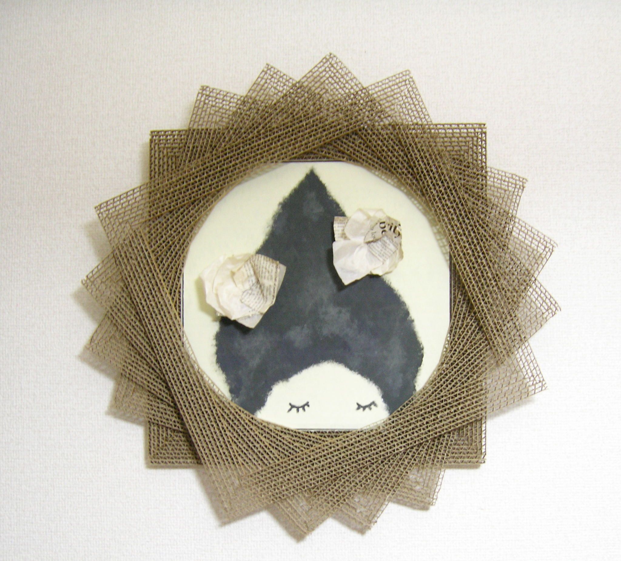 廃材の段ボールから生まれた壁掛け作品です。