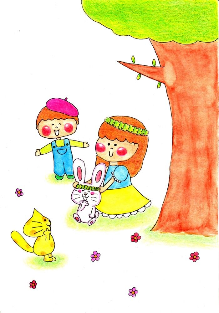 使用画材・ケント紙、ボールペン、水彩絵の具、色鉛筆