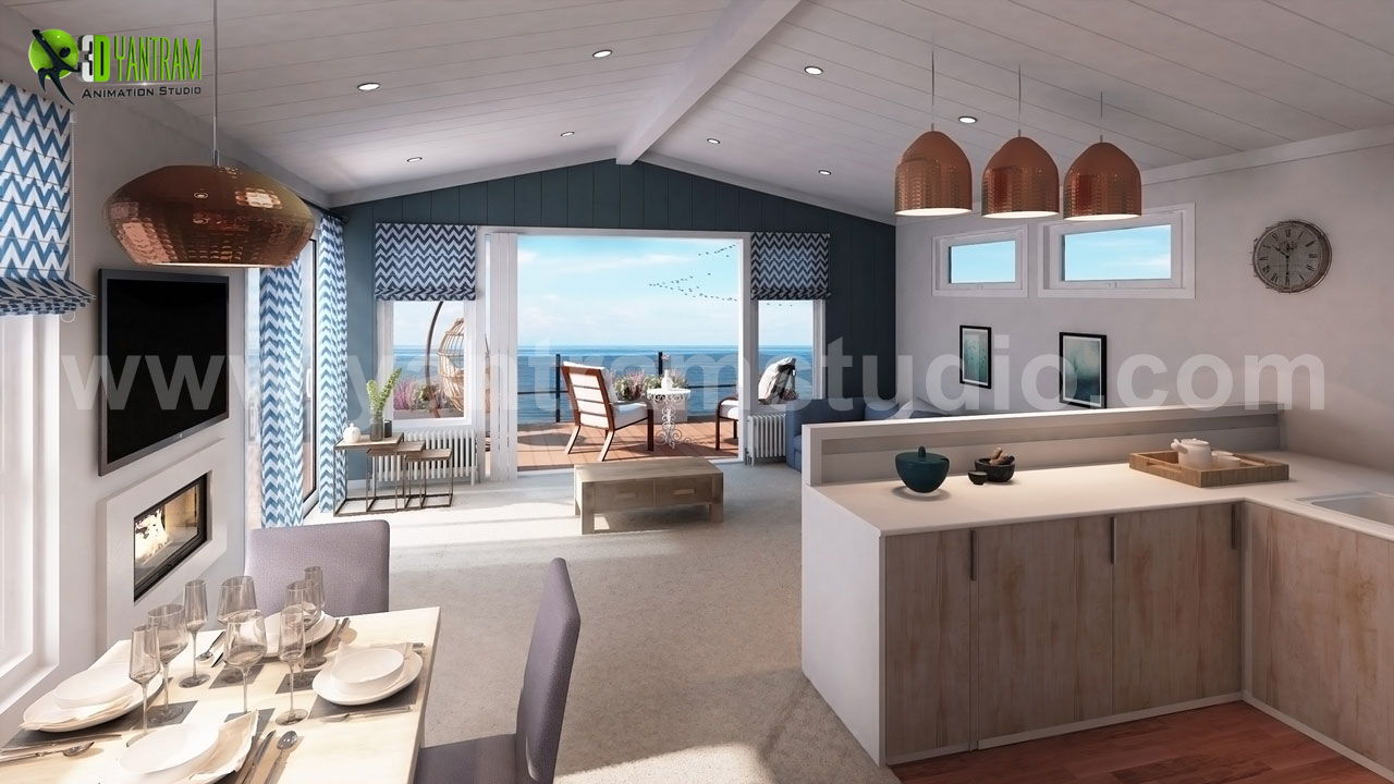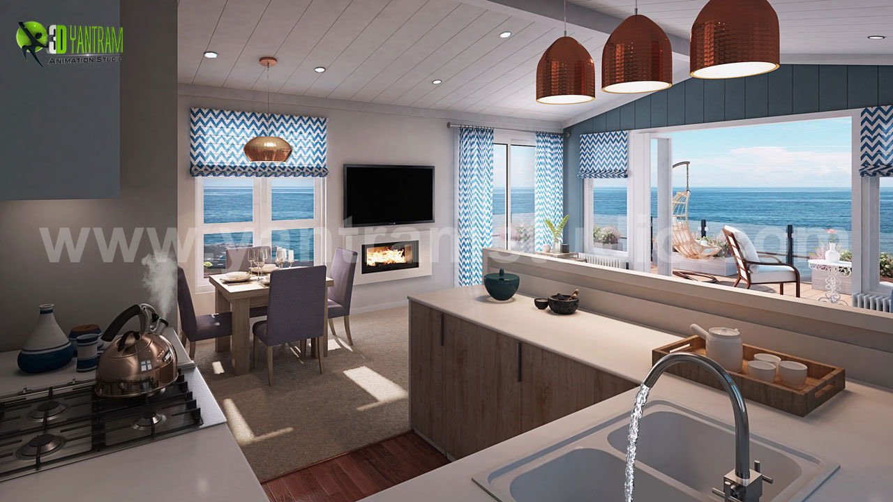 3dインテリア木製のキッチンペンダントライトyantramによる海の景色3Dレンダリングのデザイナー
