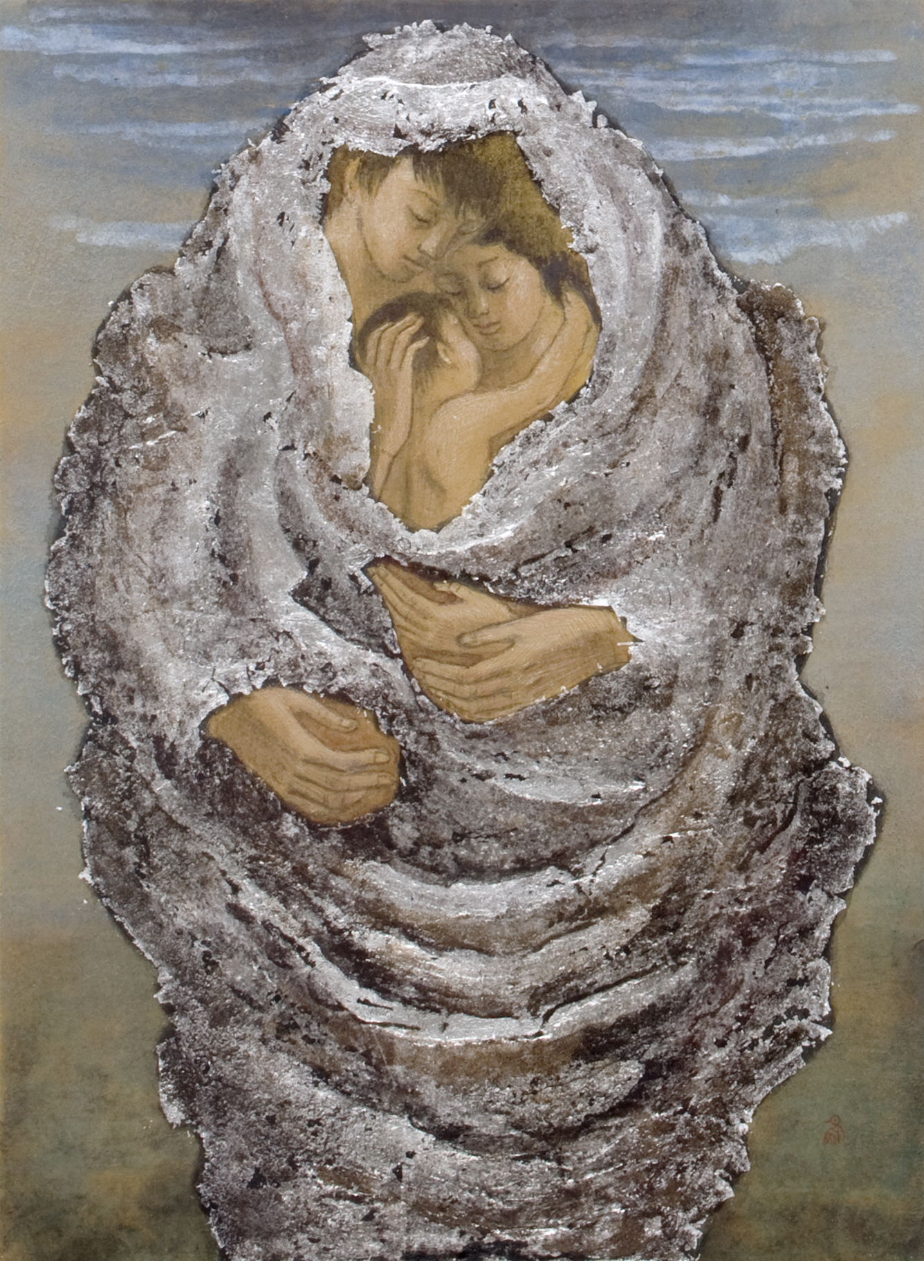 麻紙に岩絵の具、銀箔  F6号の作品です