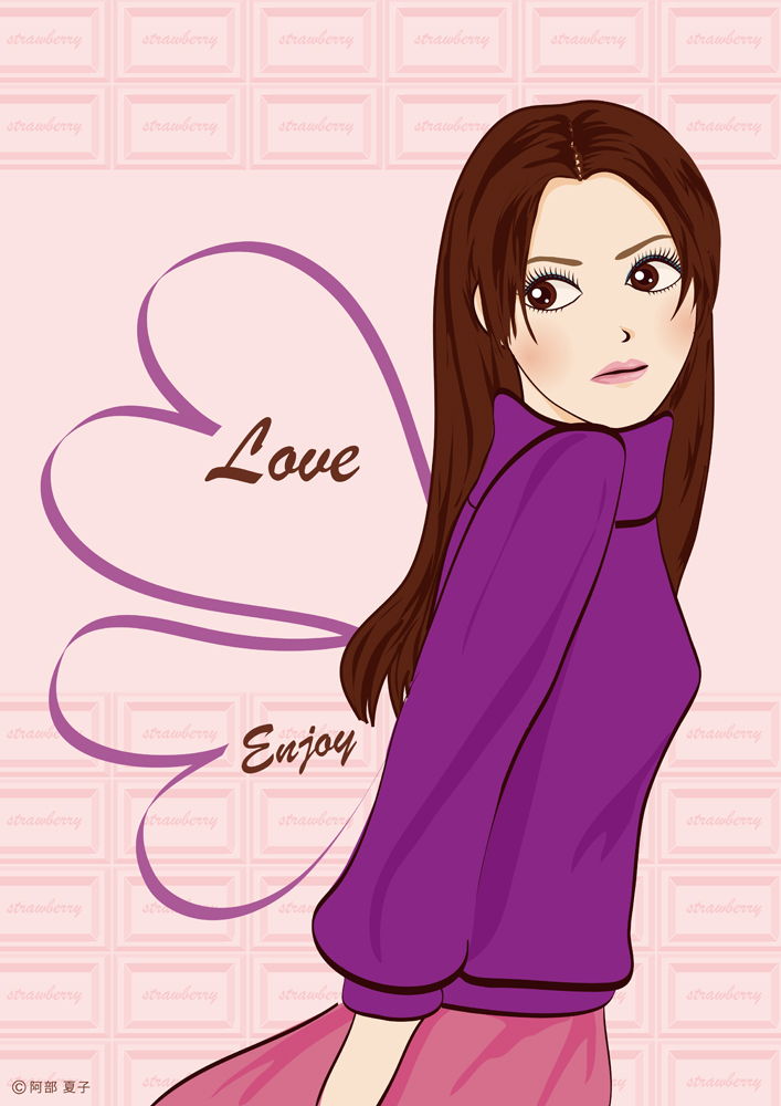 背景はストロベリーチョコのようなイメージにしてみました。好きな人に気持ちを伝えるのが恐かったり、照れくさかったり、でもいろいろ考えるのが楽しかったりする女の子の気持ちを表現してみました。
