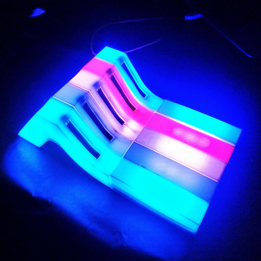 The pitch of each key board sound is indicated by the color of light emitted from it. Player can make his own optical musical scale like "put favorite color ink on pallet"