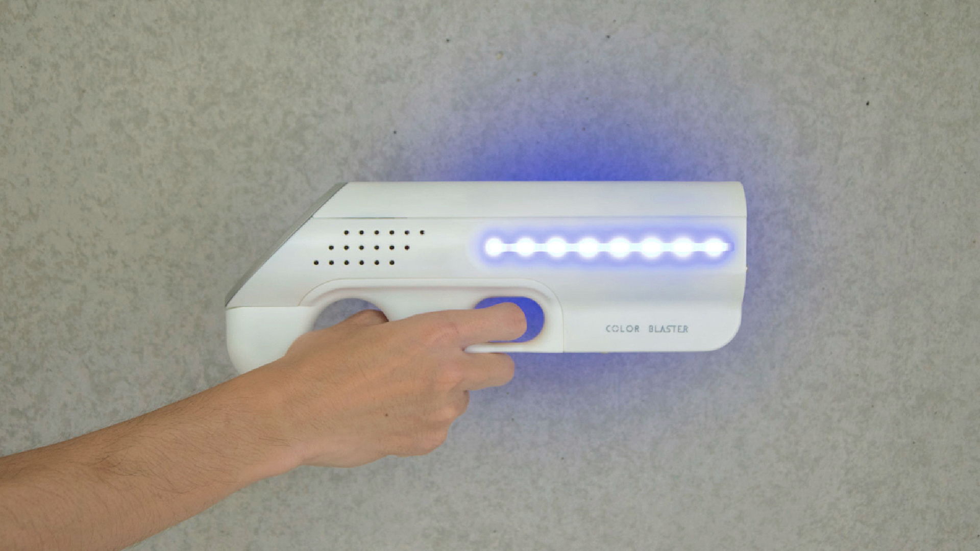 COLOR BLASTERは身の回りにあるモノの「色」がマトになる新感覚シューティングゲーム。遊び方はシンプル。指定された色を持つモノを探し、狙いを定めてトリガーを引く、たったそれだけ。場所を問わず、子供も大人も楽しむことができる。