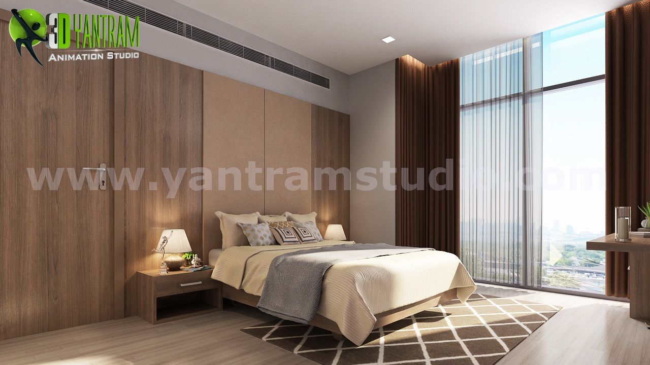 インテリアコンセプト図面による木製家具のインテリアベッドルームデザイン