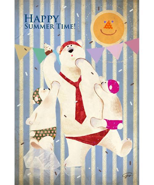 夏休みのプールサイドでの一コマです。暑中見舞い用ハガキデザイン。「第29回CREPOS SELECTION テーマ:暑中見舞い」優秀賞