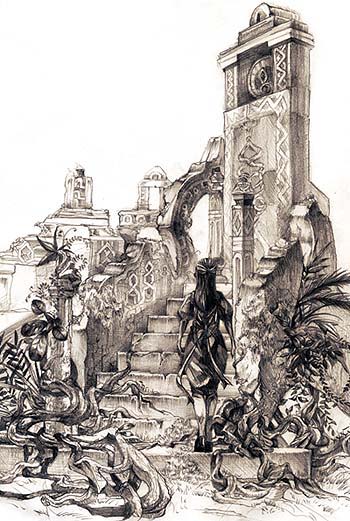 はるか昔に造られたもの、何かの跡地、というイメージで描きました。