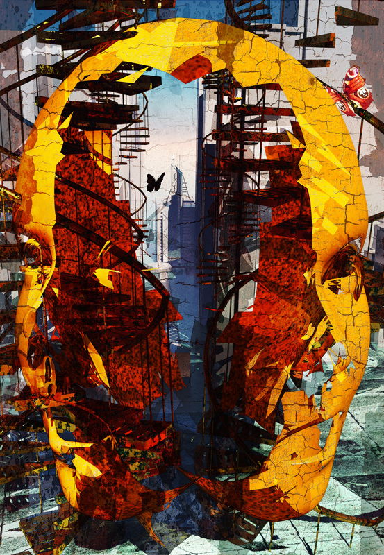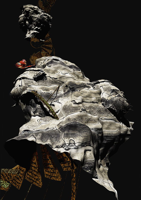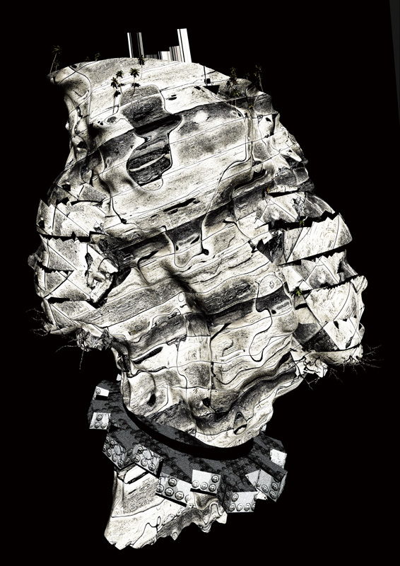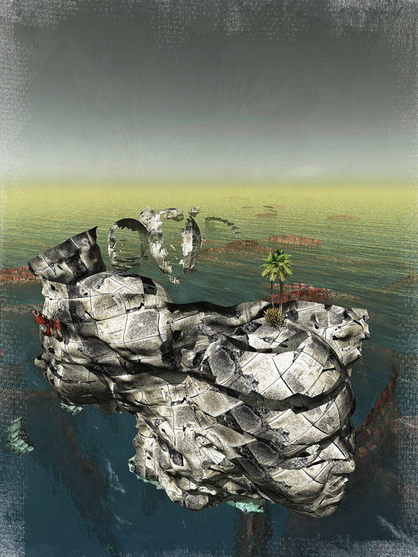 3DCGで仕上げた版画の雰囲気を目指した始めての作品になる。制作過程では、メゾチントの雰囲気を出したいと思い続けていたので、背景を黒にした。