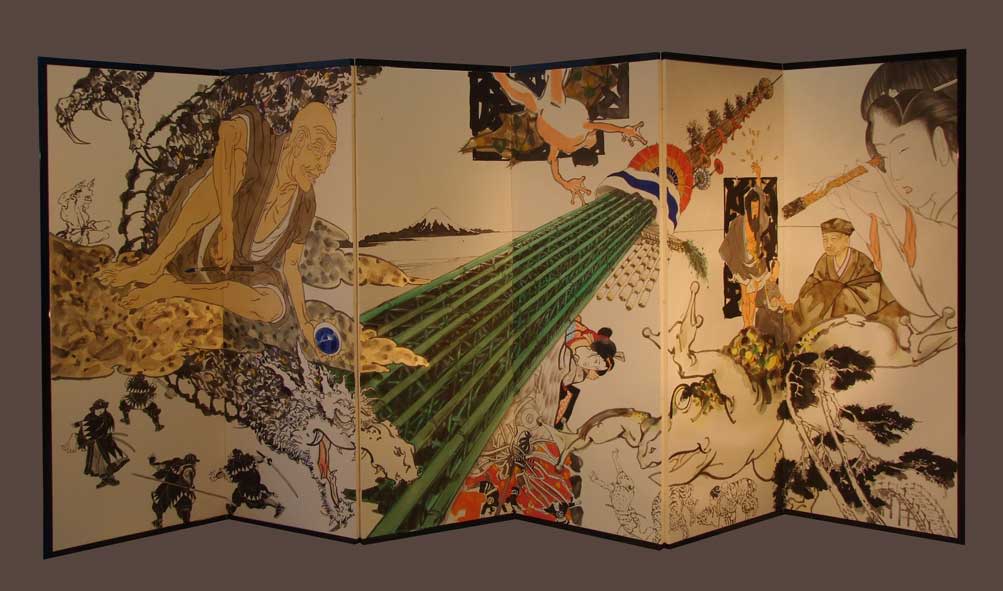 六曲屏風 天地1.2m 墨・アクリル