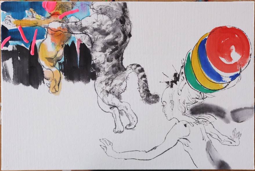 和紙パネル45x30cm 墨・顔彩
