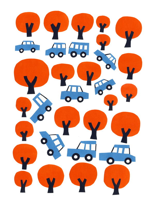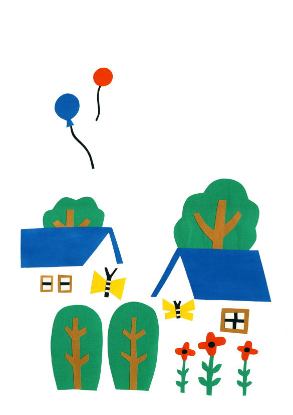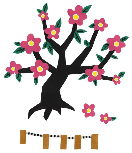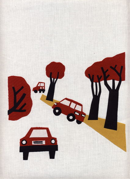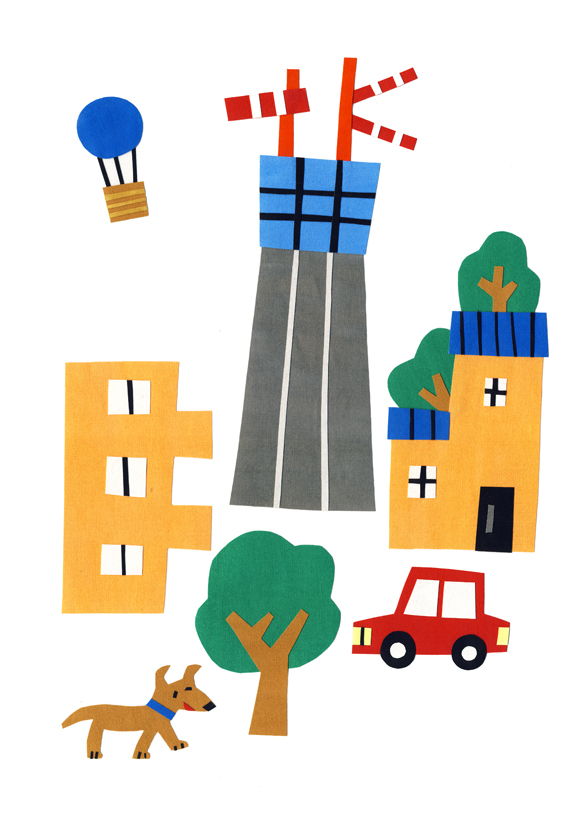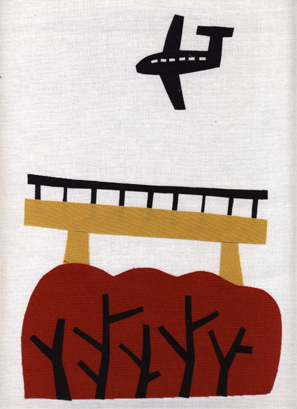 布にアクリル絵の具で着色、コラージュで制作しました。
