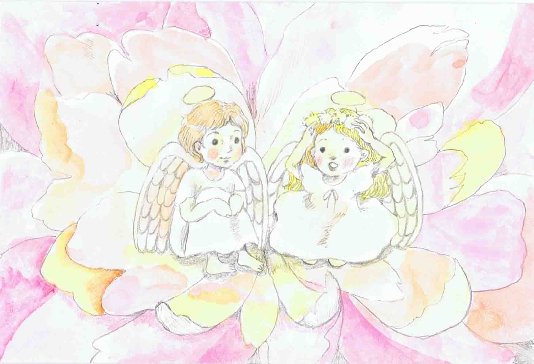 花の中にいる、天使の男の子と女の子です。クリックしてください。
