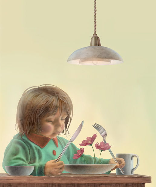 最初に4Bから6Hのハイユニの鉛筆を使って描きます。その後にスキャナーで取り込んでフォトショップで色着けしています。