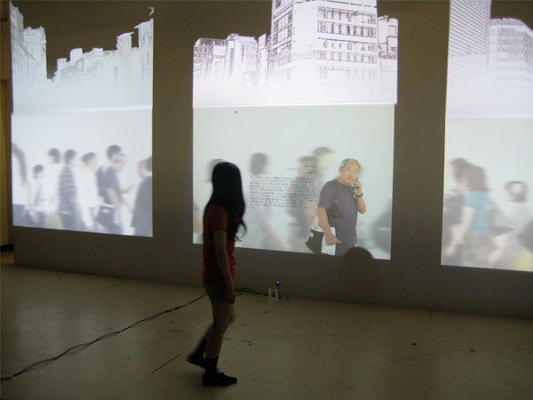 6つのプロジェクタで、街と、行き交う人々の映像を投影しています。