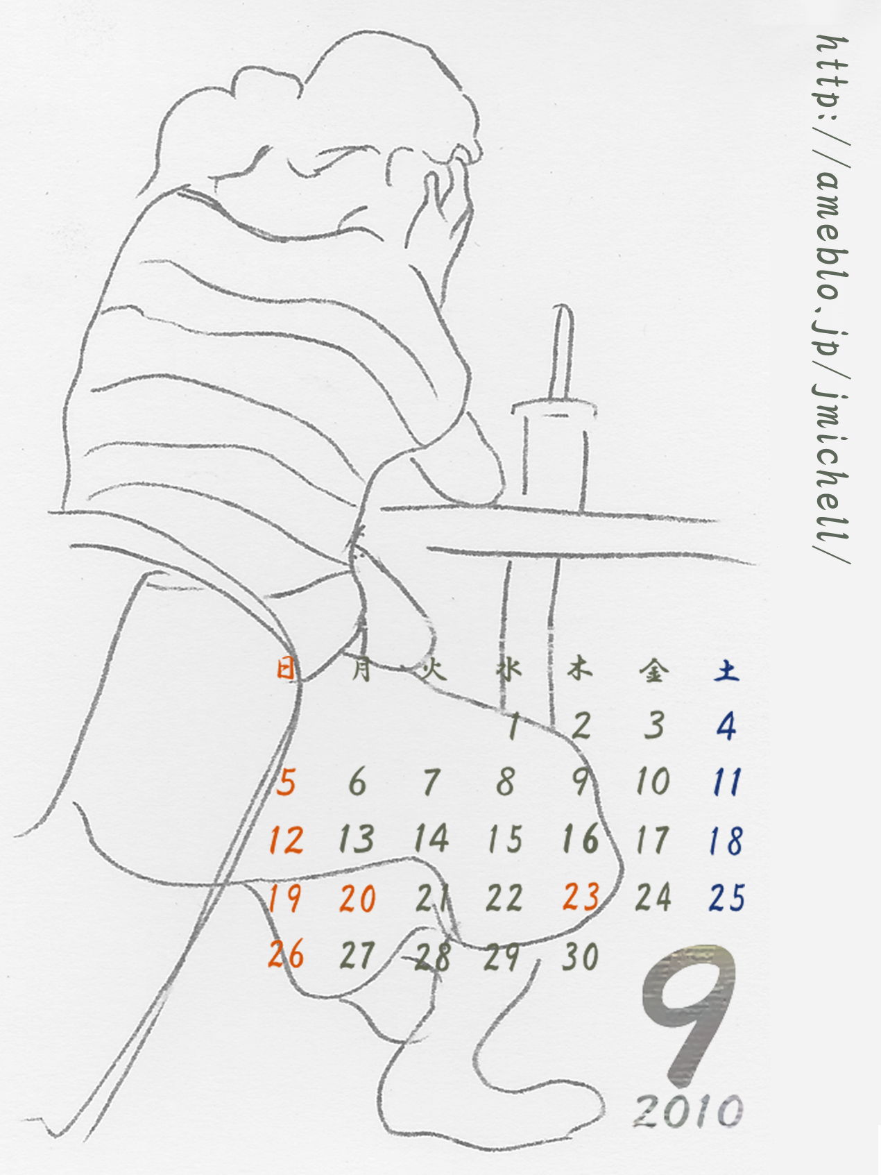9月カレンダー 白黒