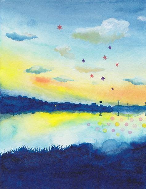 水彩絵の具・色鉛筆使用。