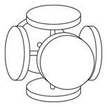 座標のx,y,z軸を中心に両端に逆回転のはずみ車を付ける。宇宙では足台となり、また、はずみ車の回転速度により、慣性を増減出来ると考える根本原理を表しています。見た目はアートのつもりです。