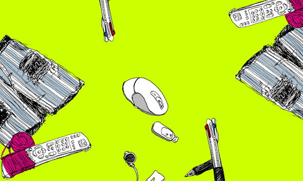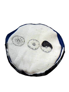 ハイテックで直接描いたドーナツ絵柄のまるポーチ。