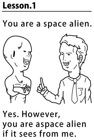(訳)貴方は宇宙人ですね。 (訳)はい。だけど私から見れば貴方も宇宙人です。