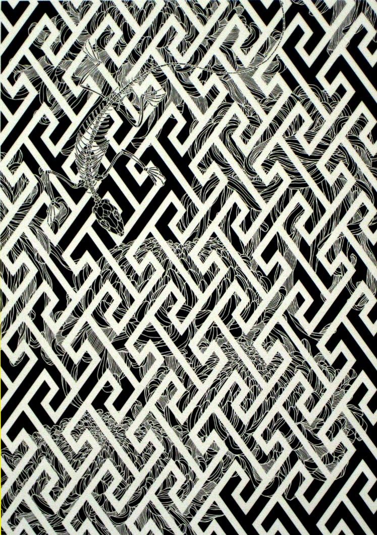大好きは蜥蜴、菊、格子が描けて嬉しかった切り絵。