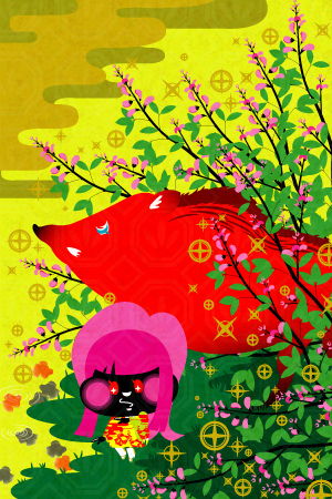 花札の萩をモチーフに描きました。