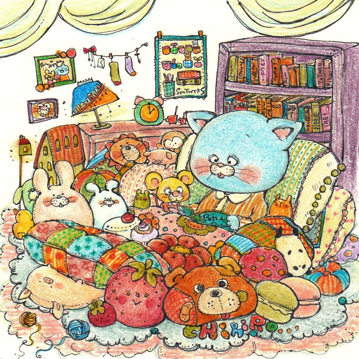 プー太とピー助、お休み前の絵本の時間。