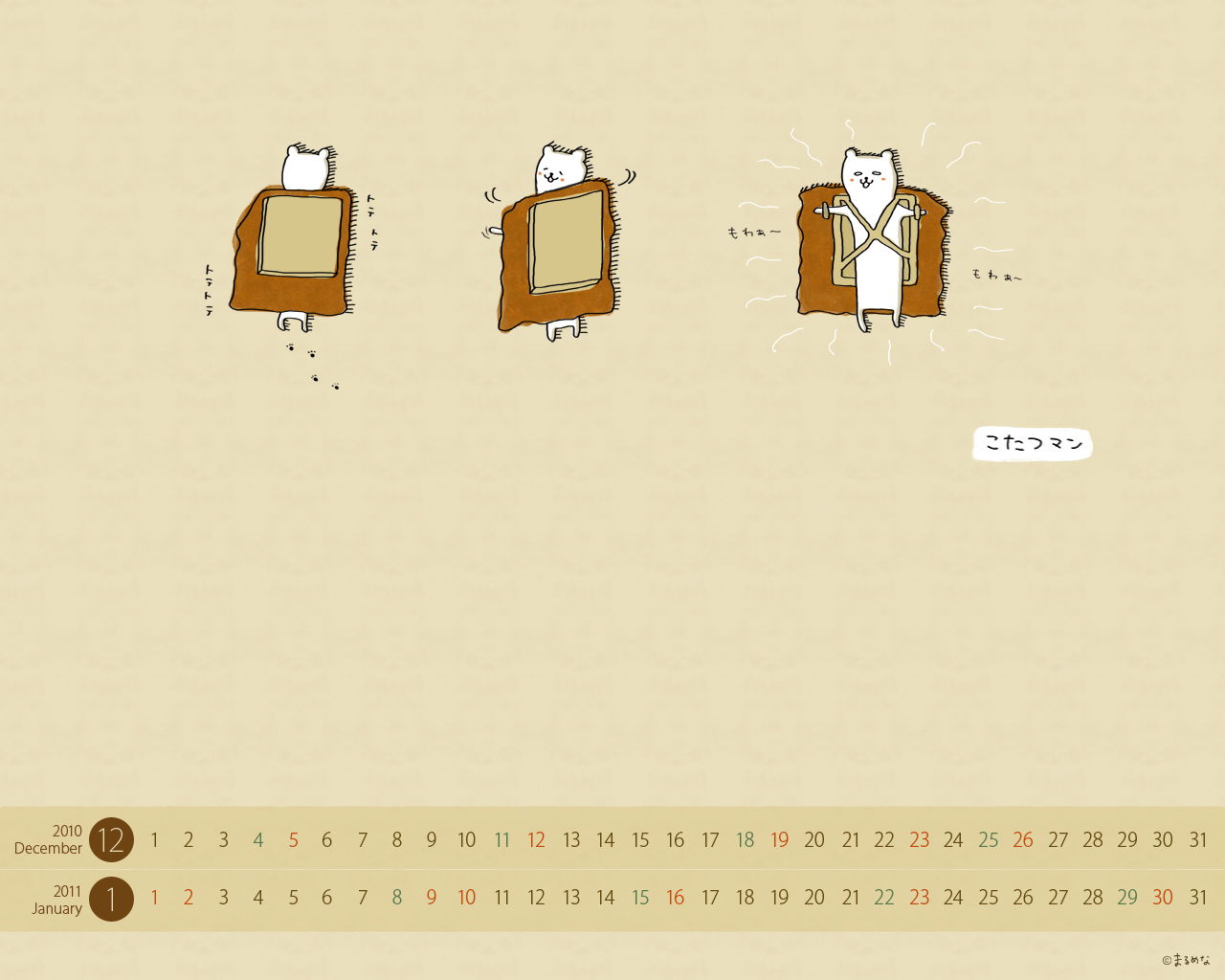 こたつマン壁紙12・1月カレンダー 1280_1024