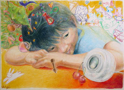 i-macの付属品スピーカーは丸くて白くてかわいいんです。何か聴こえるかな?