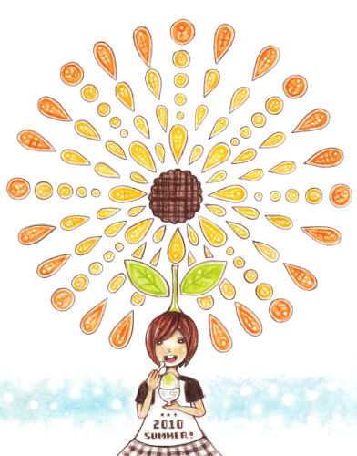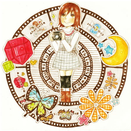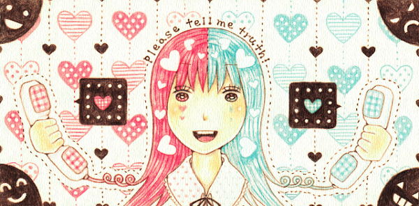 ドット ハート ピンク ボーダー 女の子 水色 涙 点 長髪 電話 image design illustration