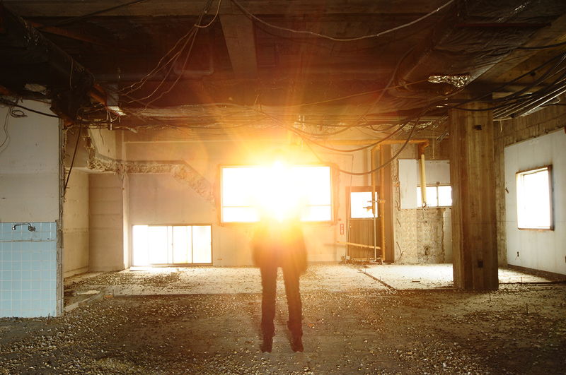 立派なギャラリーがあるビルは、実は2階より上が廃墟なのです。ギャラリースタッフをモデルに撮影しました。