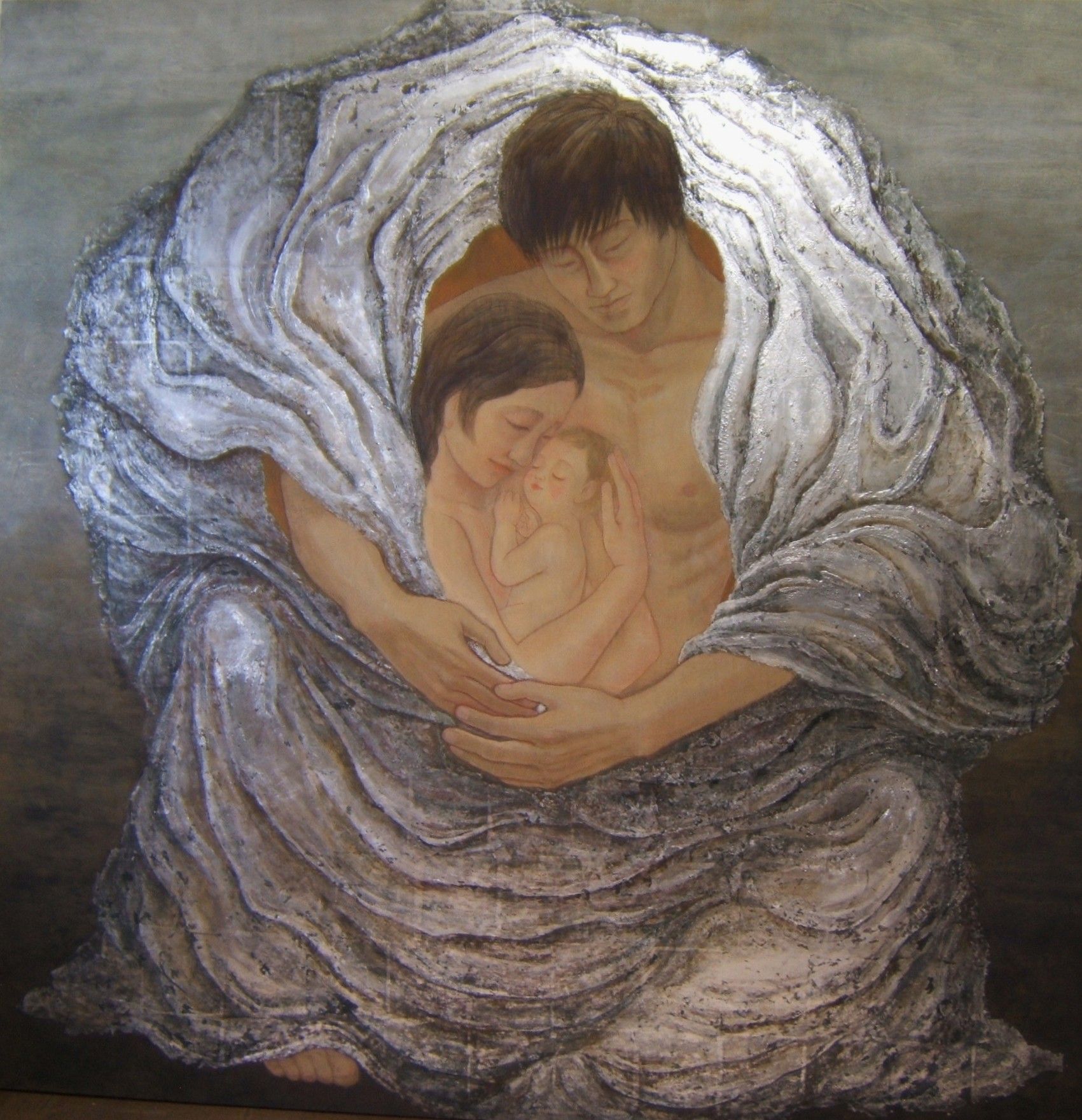 100号スクェア 麻紙に岩の具・銀箔 墨使用