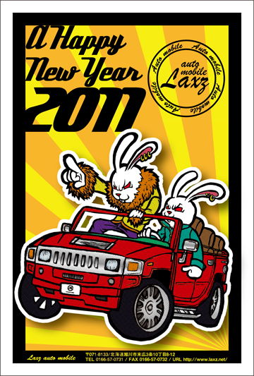 アメ車を専門に取り扱う車屋さんの2011年賀状デザインになります。