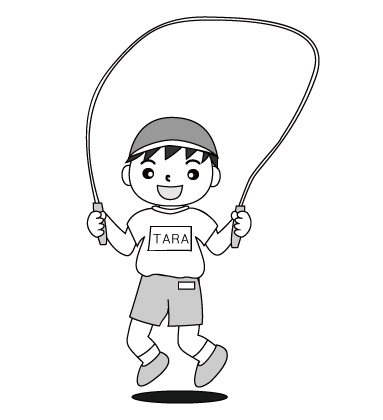 小学生のなわとびのモノクロイラストです。