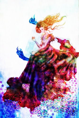 夜見る花で心癒されたくて・・・そんな気分で描いてみました。