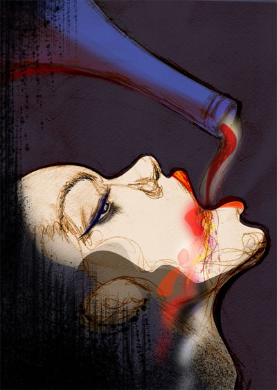 大阪の飲食店『ホリエテッパンバール』さんで描かせて頂いた絵です。