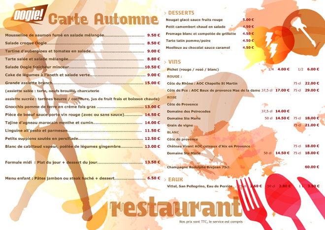 レストランのメニューのレイアウトデザイン