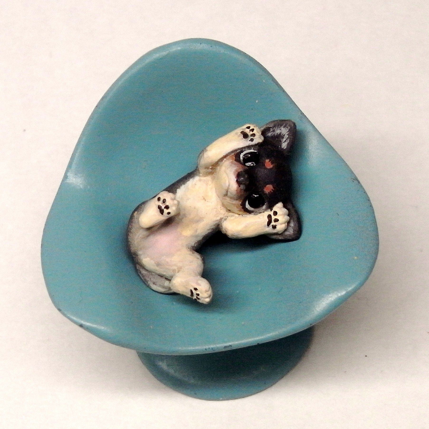 チェアーの大きさ4センチ、犬の大きさは3センチ程のちいさな作品です。